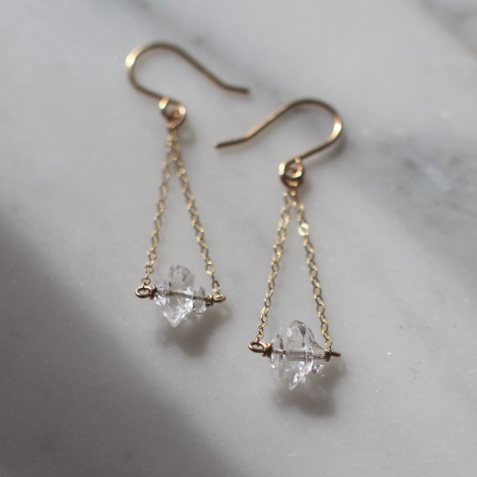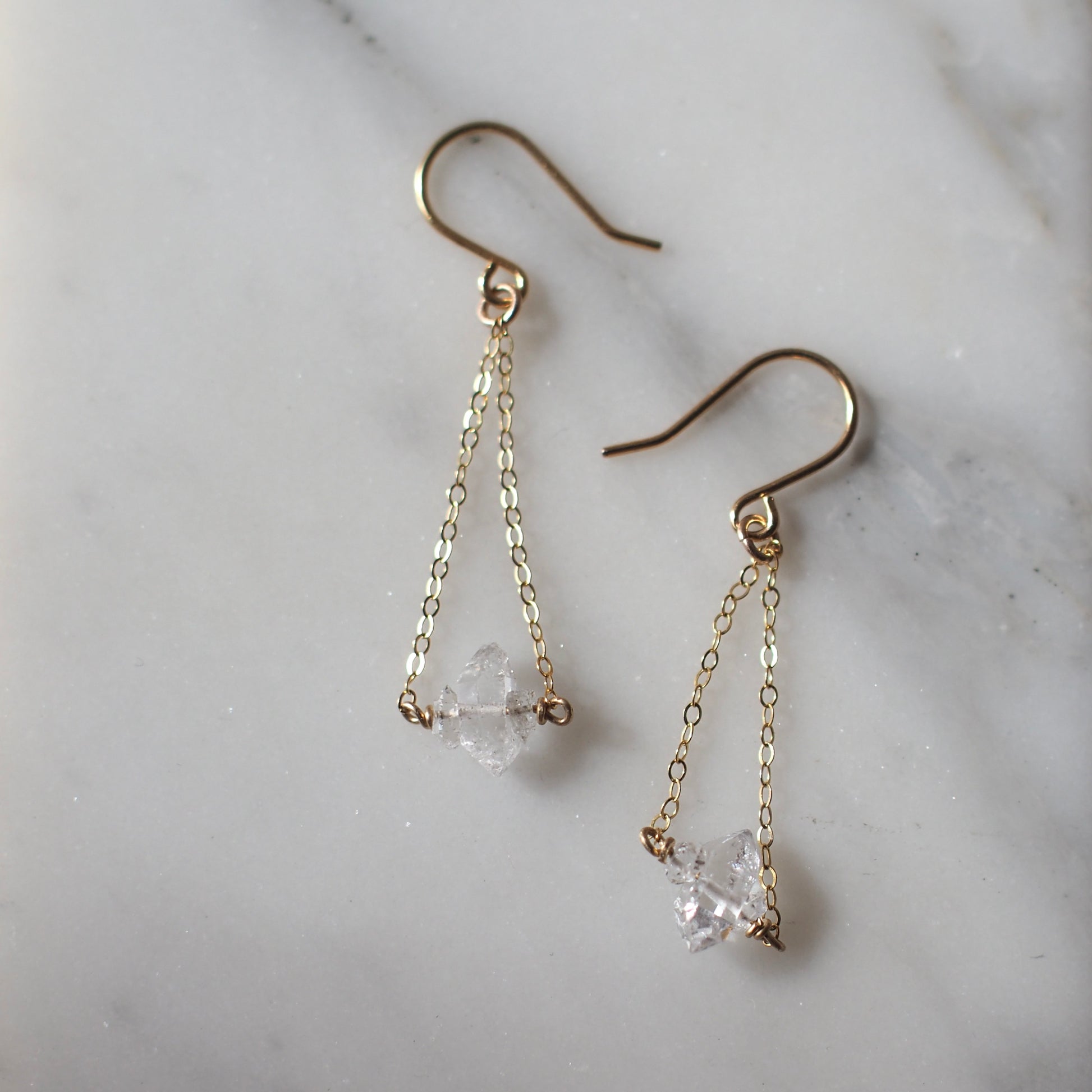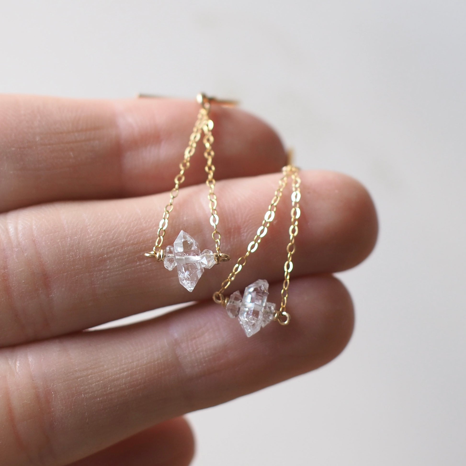 Three tiny raw quartz crystals cascade down in some the most delicate earrings I've ever made. Each grouping of crystals looks like a tiny chandelier fit for a fairy.