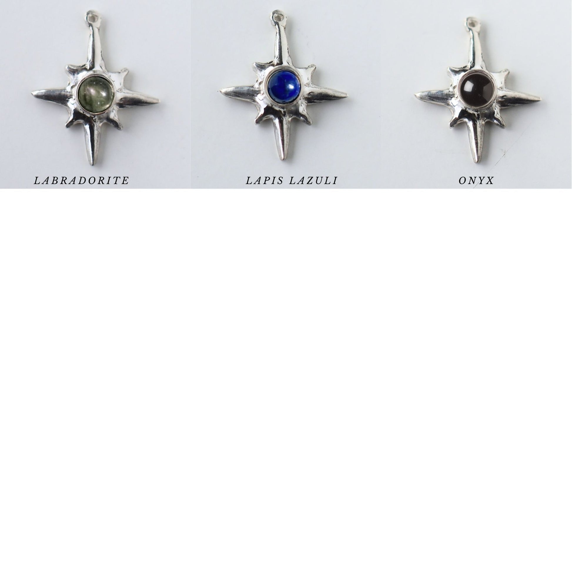 The Polaris Choker features a mini star, measuring 3/4 x 3/4 inch and hangs on a sterling silver chain. (Please note, I am currently sold out of the dotted style pictured and the chain will be substituted with a similar sterling silver curb chain.) The chain is adjustable between 16-18 inches and is lead and nickel free. Choose your favorite gemstone for the center!